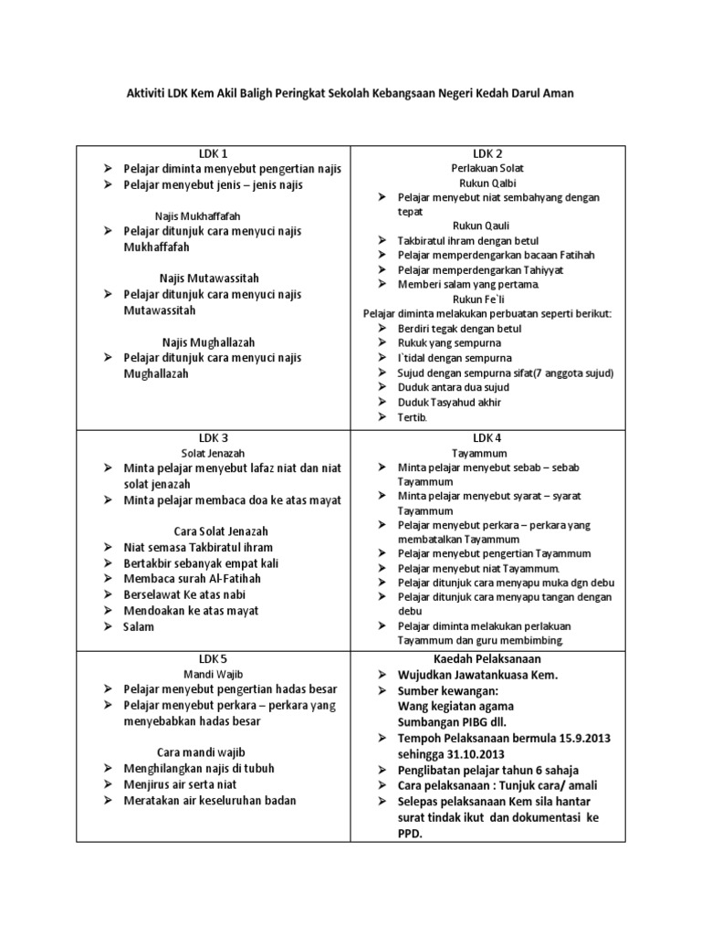 Aktiviti Ldk Kem Akil Baligh Peringkat Sekolah Kebangsaan Negeri Kedah Darul Aman