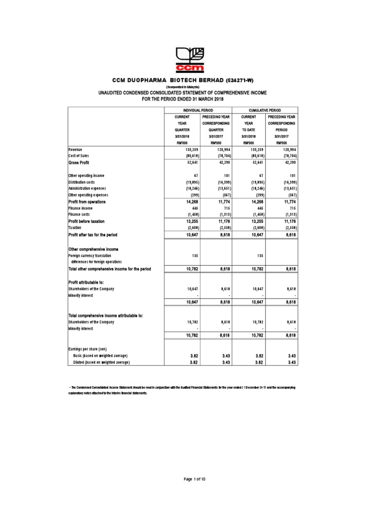 Ccmdbio Q1 2018 28052018 Financial Statement Revenue Free 30 Day Trial Scribd