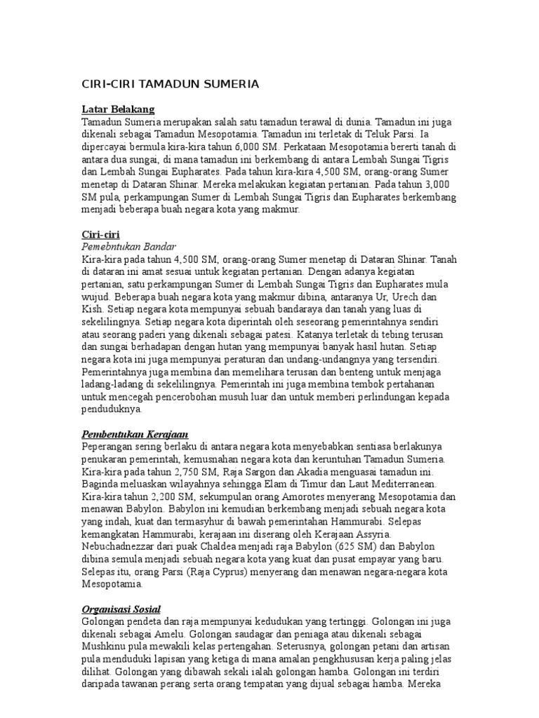 Ciri Ciri Tamadun Sumeria Latar Belakang Tamadun Sumeria
